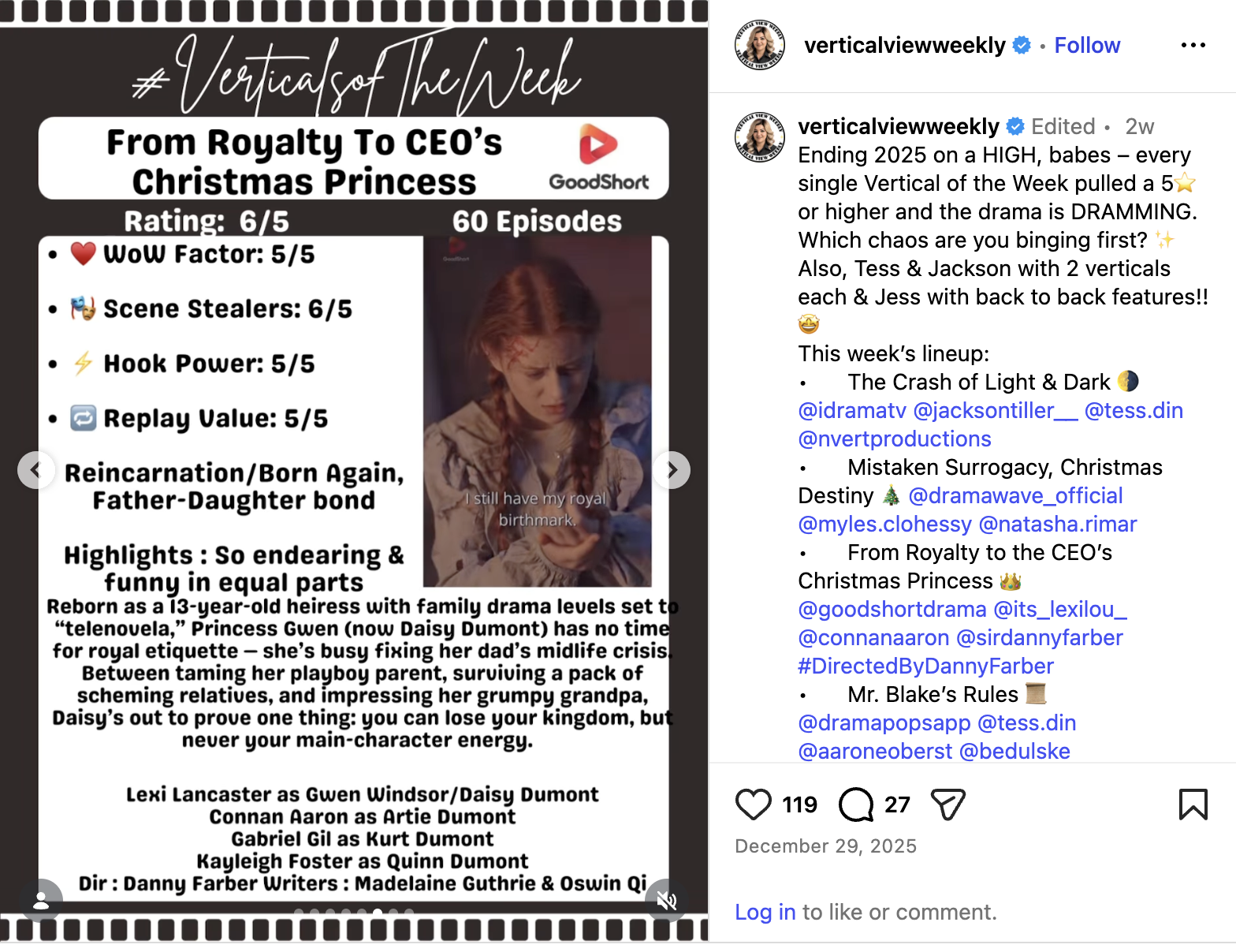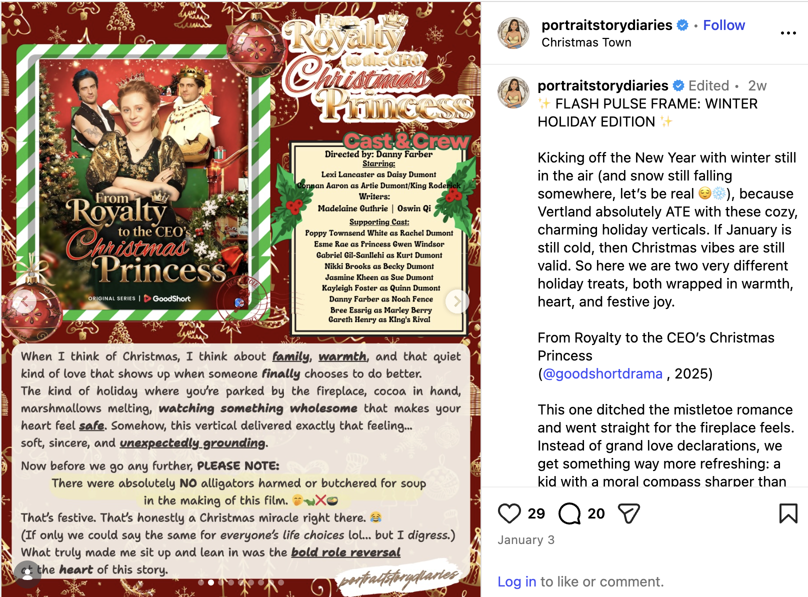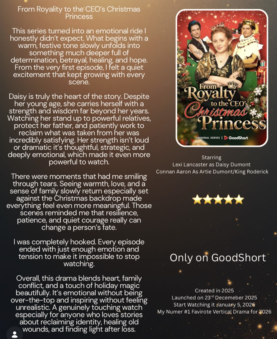 FROM ROYALTY TO THE CEO’S CHRISTMAS PRINCESS vertical drama GoodShort202583.9K Views WATCH HERE View this post on Instagram A post shared by Sea Star Production (@seastarproductionuk) View this post on Instagram A post shared by Jen (@verticaldramalove) View this post on Instagram A post shared by Sea Star Production (@seastarproductionuk) View this post on Instagram A post shared by Cass Arcadia Smith (@missverticalshorts) View this post on Instagram A post shared by Sea Star Production (@seastarproductionuk) View this post on Instagram A post shared by Jen (@verticaldramalove) View this post on Instagram A post shared by Aline (@i.love.verticals) View this post on Instagram A post shared by Dalia 💞 (@verticalfilmslover) View this post on Instagram A post shared by Luna Leigha (@llpublicity2025) View this post on Instagram A post shared by Luna Leigha (@llpublicity2025) View this post on Instagram A post shared by VerticalActorsFan Cindy Sorley (@verticalactorsfan_cindy_sorley) View this post on Instagram A post shared by GoodShort Official Account (@goodshortdrama) View this post on Instagram A post shared by VerticalActorsNetwork Cindy Sorley (@verticalactorsnetwork) View this post on Instagram A post shared by Meagan (@realreeldrama) View this post on Instagram A post shared by Jen & Karen (@thisverticalslaps) View this post on Instagram A post shared by Meagan (@realreeldrama) View this post on Instagram A post shared by Kitt Crescendo (@kittcrescendo) View this post on Instagram A post shared by H (@vertical_fan) View this post on Instagram A post shared by Kitt Crescendo (@kittcrescendo)